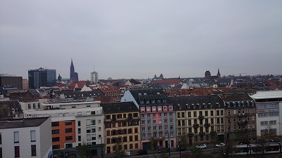町中の駐車場に停めました。屋上からストラスブールの町が見えます。